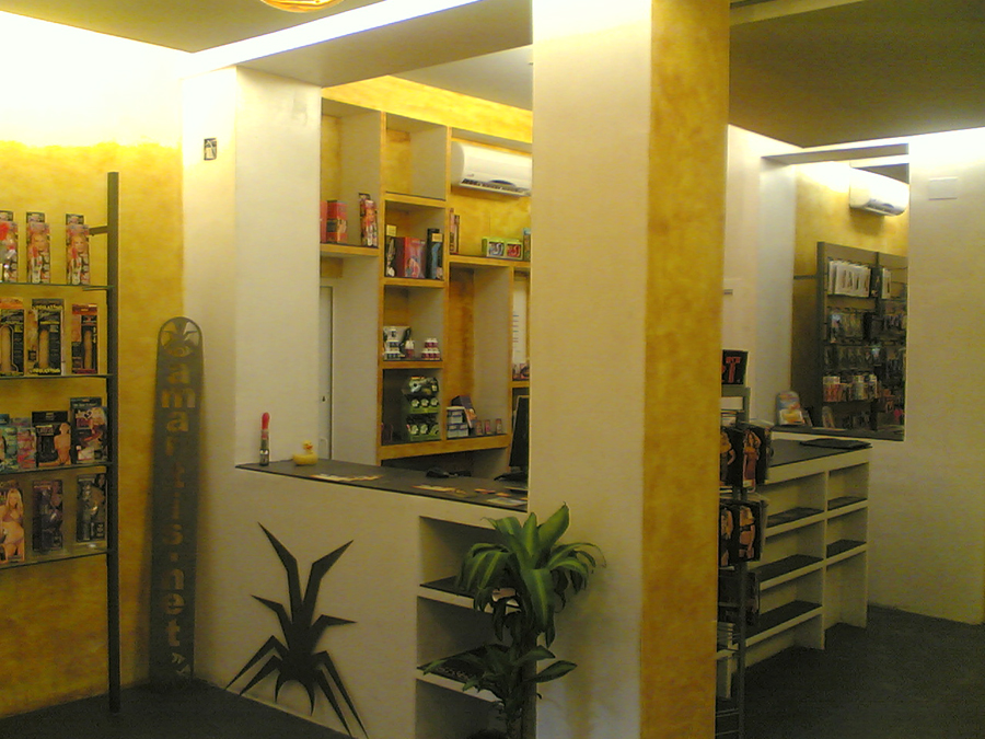 Estanterías salientes, el mostrador, los pilares existentes, el