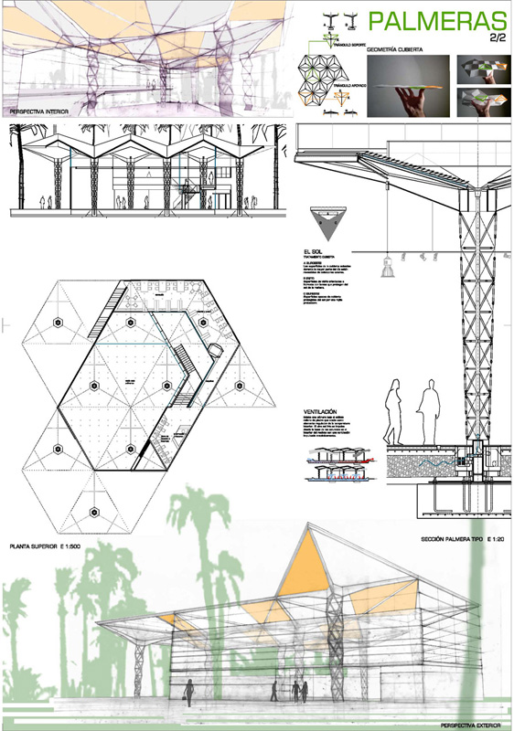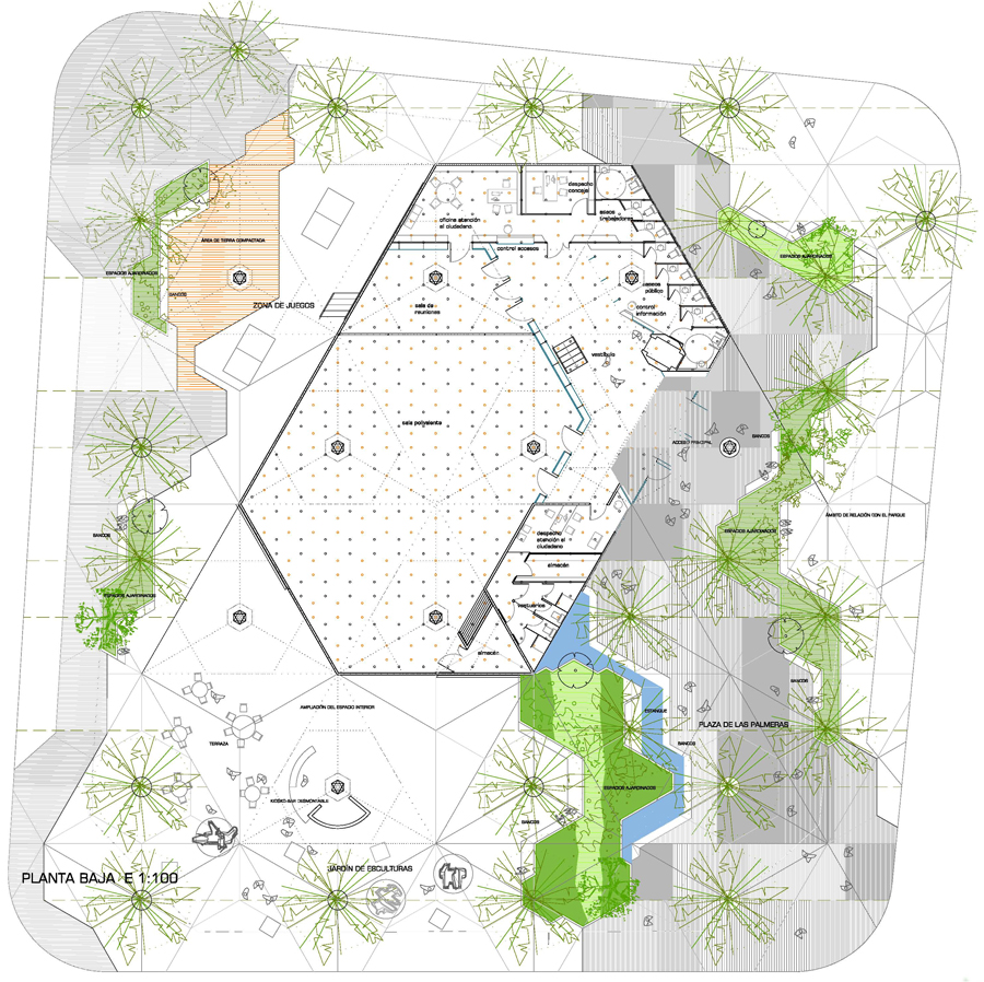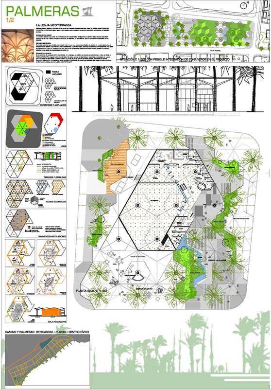 En un entorno de escasas referencias donde, sin embargo, se adivina una esencia característica y única, se dibuja un PAISAJE IMPLÍCITO, singular y a la vez del sitio. Un nuevo paisaje configurado por naturaleza y arquitectura, que se prolonga hacia el mar desde el Centro Cívico, siguiendo la pauta que las palmeras señalan, bordeando el parque, buscando unirse a las que jalonan el paseo marítimo. Secuencia de elementos vegetales que desde el centro histórico de Benicassim avisan, apuntan, guían hacia "El Palmeral".