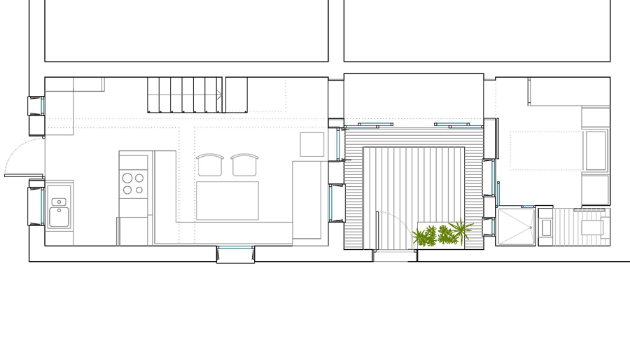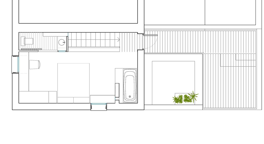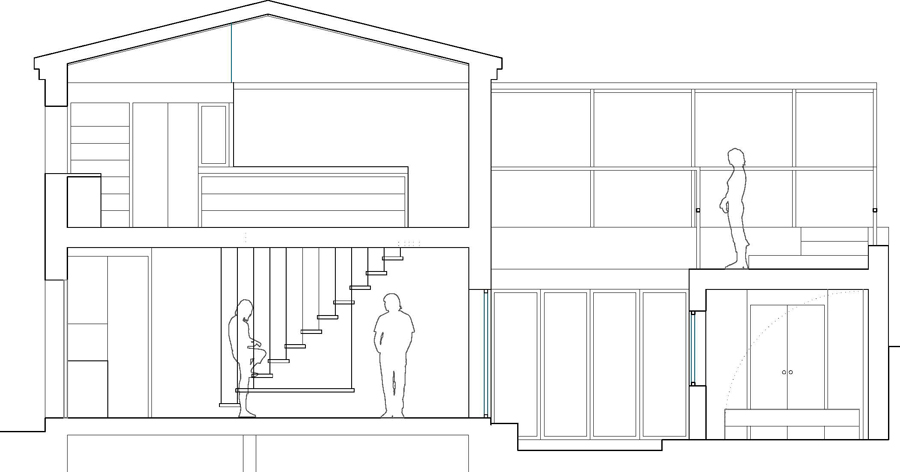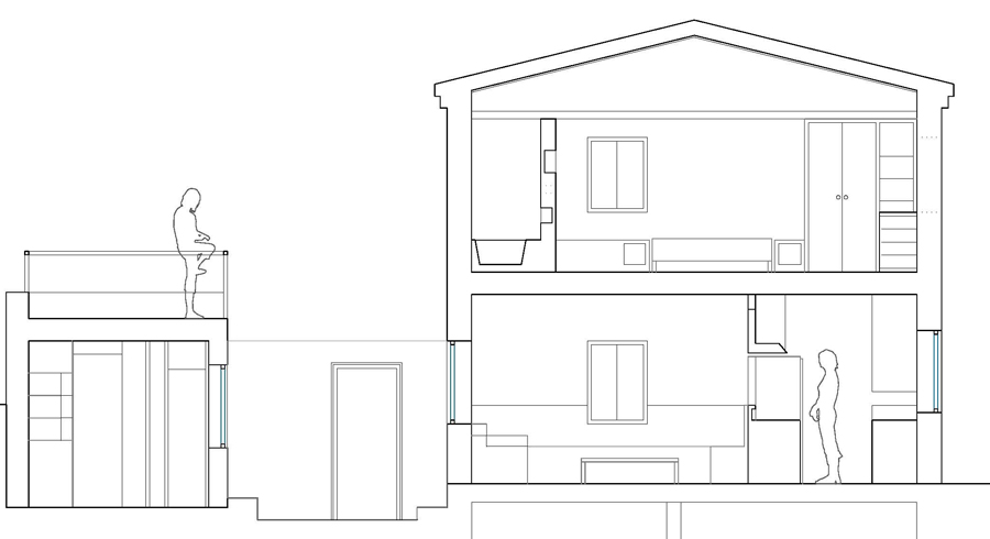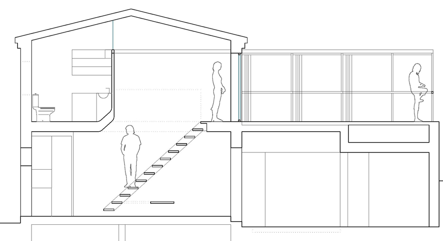 Se plantea la reforma completa, estructura, instalaciones y acabados, del interior de la vivienda, dejando diáfanos los espacios, y una ampliación consistente en una galería aglutinadora de funciones: por un lado conecta los dos cuerpos de la vivienda; por otro se convierte en vestíbulo principal, al pasar a ser el acceso desde el patio la entrada principal de la vivienda. Por último, sirve de conexión elevada entre la planta superior del cuerpo principal y la azotea del secundario.