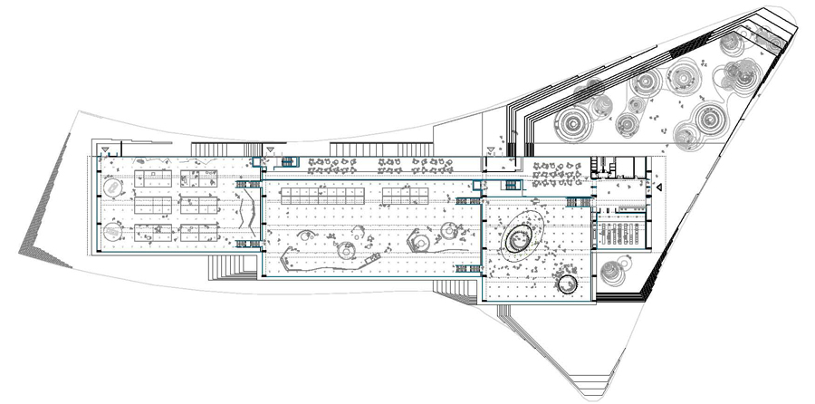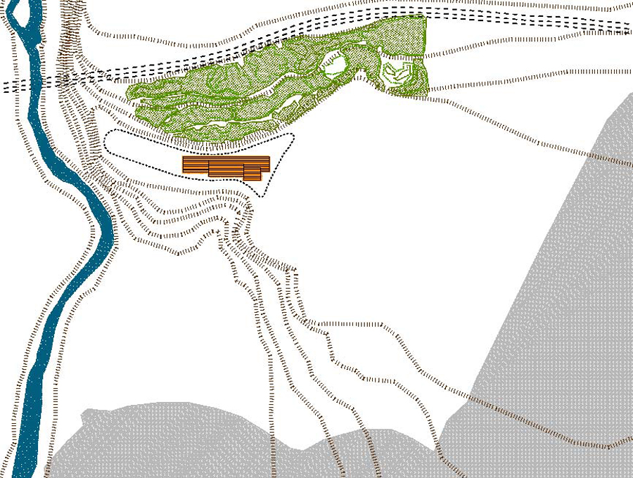 Una cubierta de topografía ondulante completa el perfil del relieve natural y acompaña con su movimiento las líneas del paisaje. En una posición privilegiada, como una atalaya, se abre al paisaje de Puente Genil.