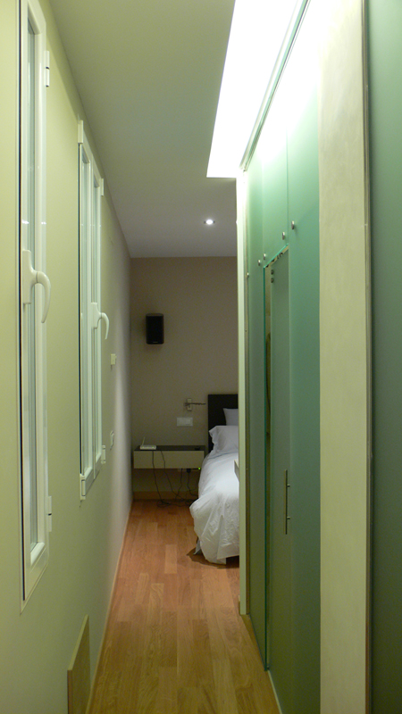 El ambiente interior se considera de partida el más adecuado para los espacios de mayor intimidad por el menor nivel de ruido de la calle y el exterior se corresponde con las dos primeras crujías de la vivienda, con iluminación de los dos balcones de fachada.