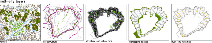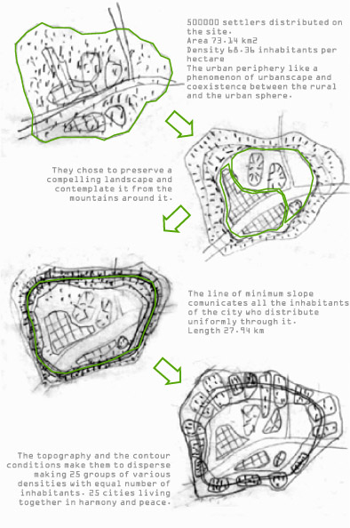 distribuye en forma de anillo de muchas “ciudades” autosuficientes,