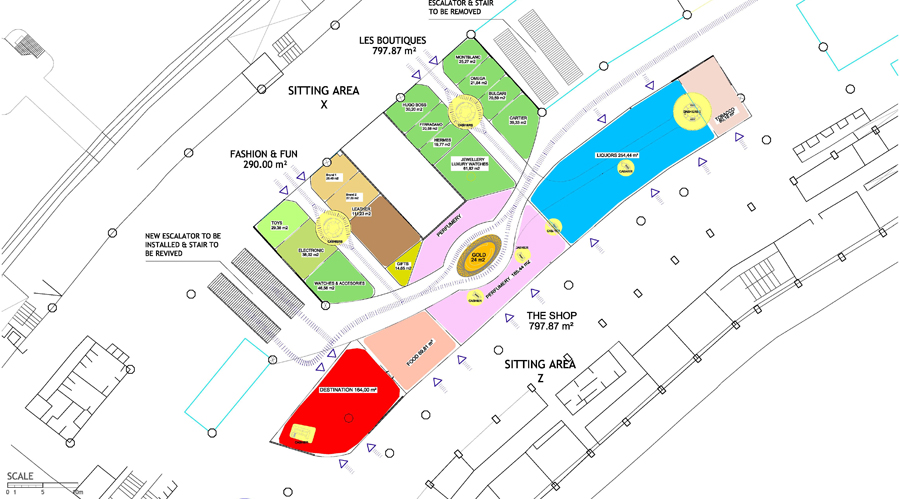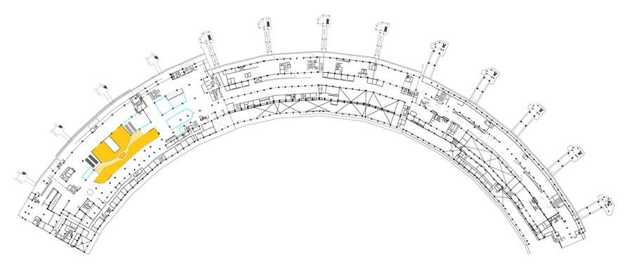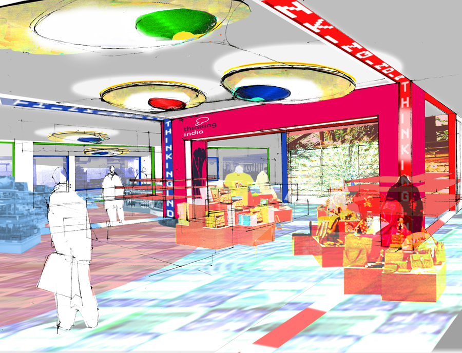 La imagen del pavo real ha sido elegida para este proyecto como pretexto estructural. Articula los diversos motivos arquitectónicos que organizarán las tiendas del aeropuerto de Mumbai. El pavo real aglutina tres características diferentes que hacen extremadamente atractiva su aplicación en este caso.