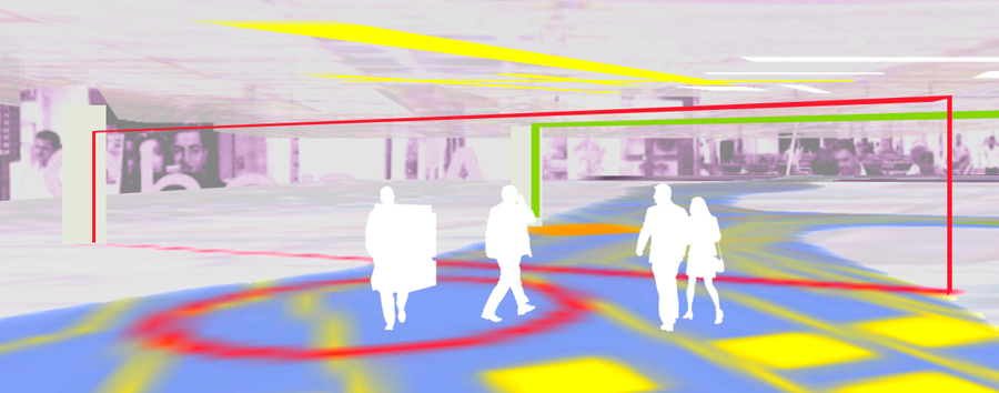 Estamos interesados en el pavo real como una máquina de atracción. La idea consiste en generar imágenes expontáneas de atracción modificando luces y proyecciones que desvíen a los pasajeros de los itinerarios básicos.