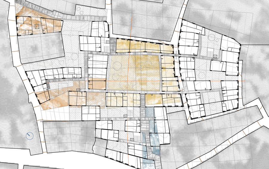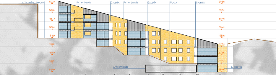 alrededor. Forma parte del mismo sólido horadado por patios,